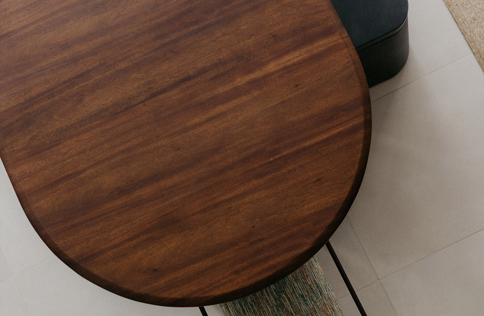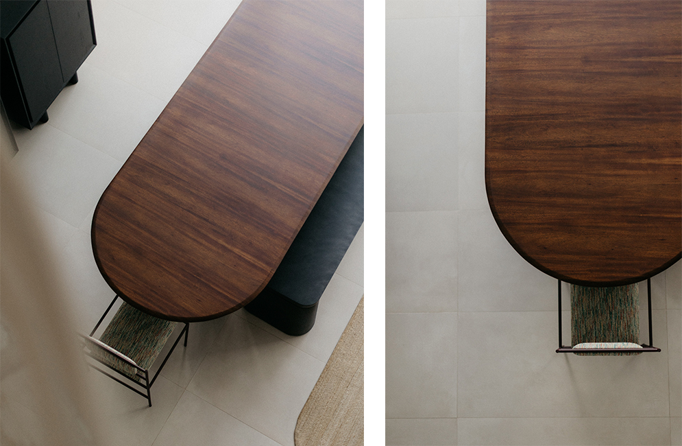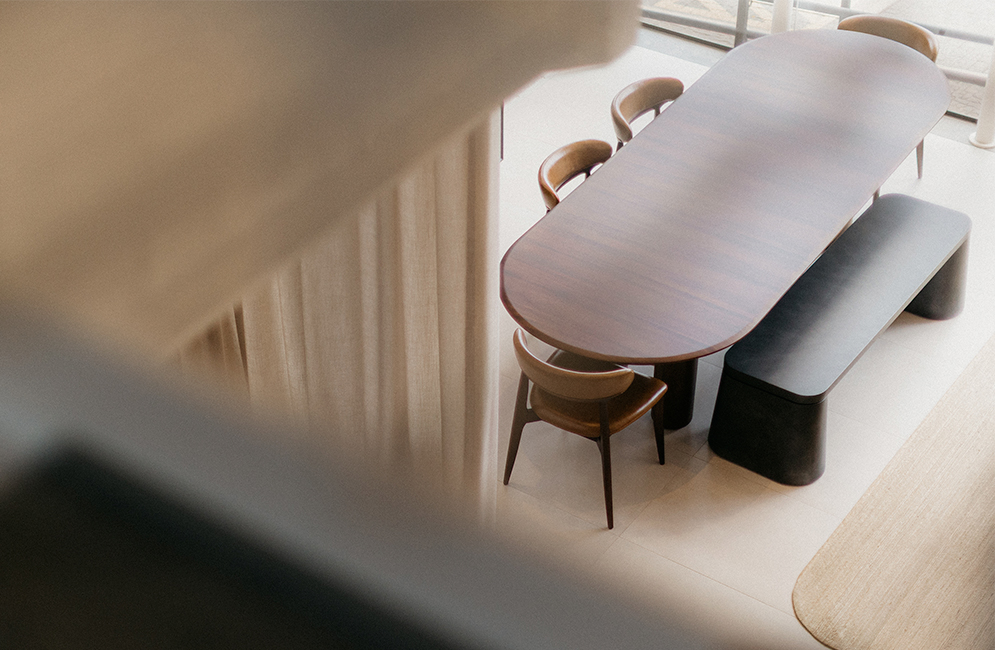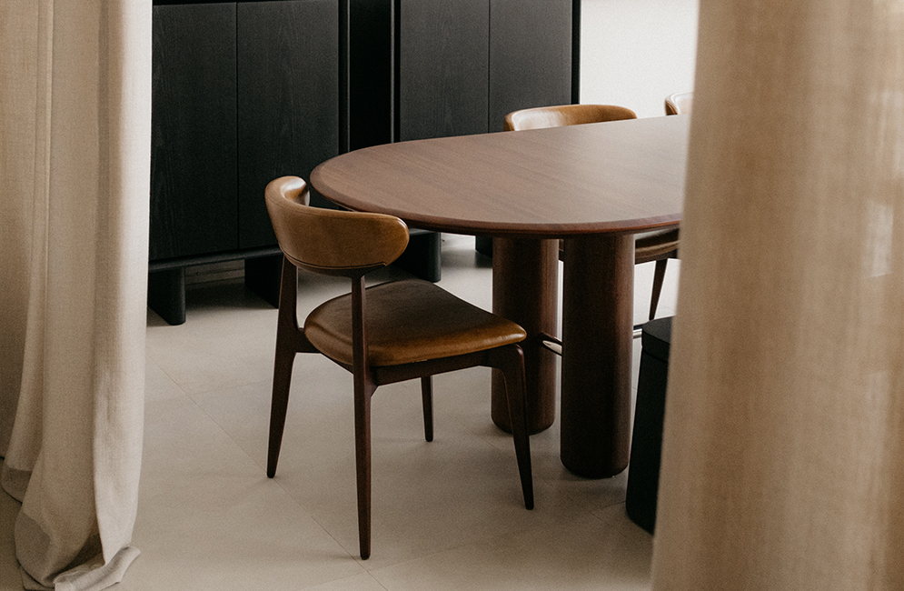 Encontre uma loja mais próximaThe Ava Oblonga dining table has a contemporary design, marked by clean lines and generous proportions. Its oval top softens the geometry and invites conviviality, while the sturdy structure with cylindrical legs in solid wood gives it solidity and presence. A metal bar runs across the base, introducing an element of visual contrast and structural functionality. Ava Oblonga balances strength and lightness with elegance, adapting easily to different chair compositions and environments. Customizable in different sizes and finishes.