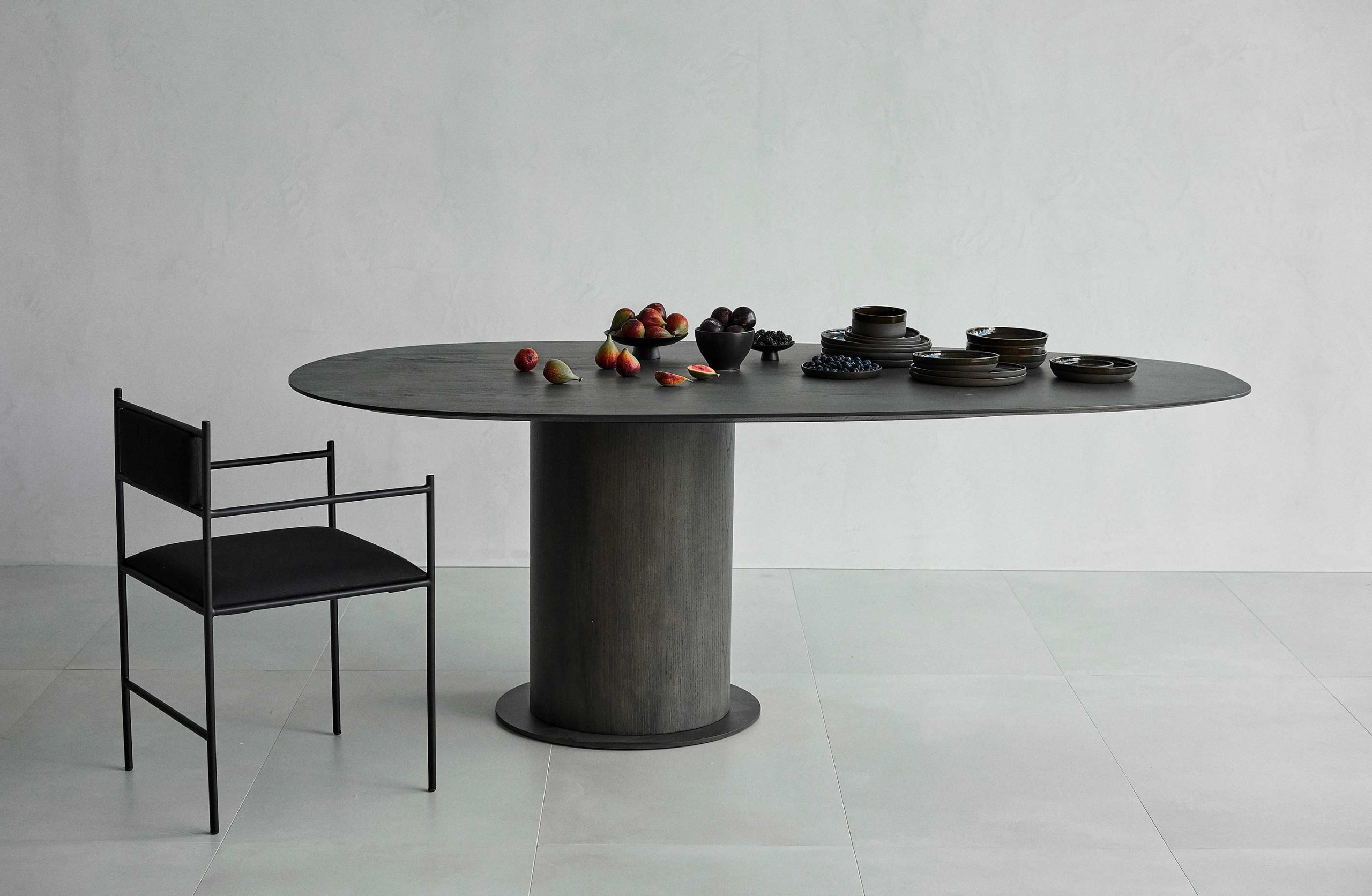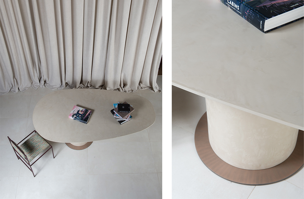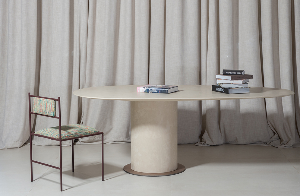 Encontre uma loja mais próximaThe Avocado dining table has a contemporary design, marked by smooth lines and balanced proportions. Its organic top, with rounded edges, rests on an imposing central cylindrical base, which guarantees stability and visual presence. The clean, sculptural design of the piece adapts easily to different environments, functioning as a central element in the composition of dining rooms, meeting areas or hybrid spaces. Available in multiple sizes and finishes.