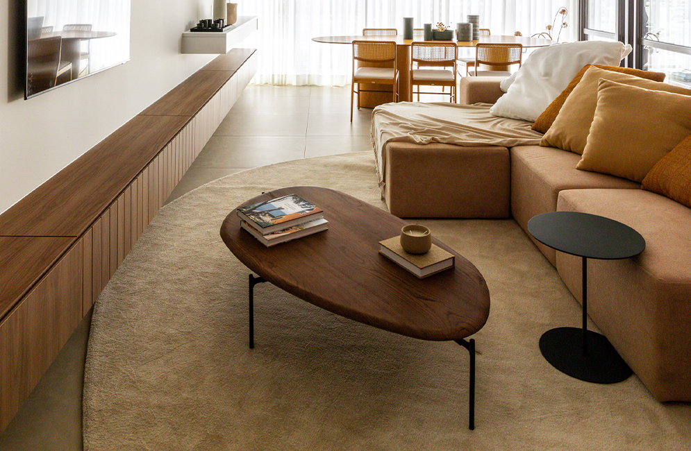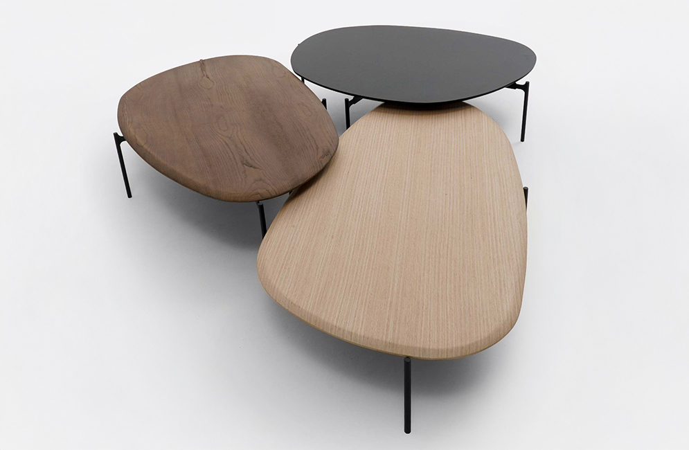 Encontre uma loja mais próximaThe Balance coffee table is a contemporary design piece that stands out for its organic shapes and fluid composition. Composed of tops with asymmetrical contours, it evokes the natural design of rolled stones, adding lightness and movement to the environment. Balance is available in multiple sizes and finishes, allowing for versatile and sophisticated combinations. The tops overlap slightly when arranged in a composition, creating a dynamic and elegant visual effect. The variations in height between the tables reinforce this fluidity and add depth to the whole. The metal bases are thin and discreet, with painted steel legs that support the tops lightly and firmly.