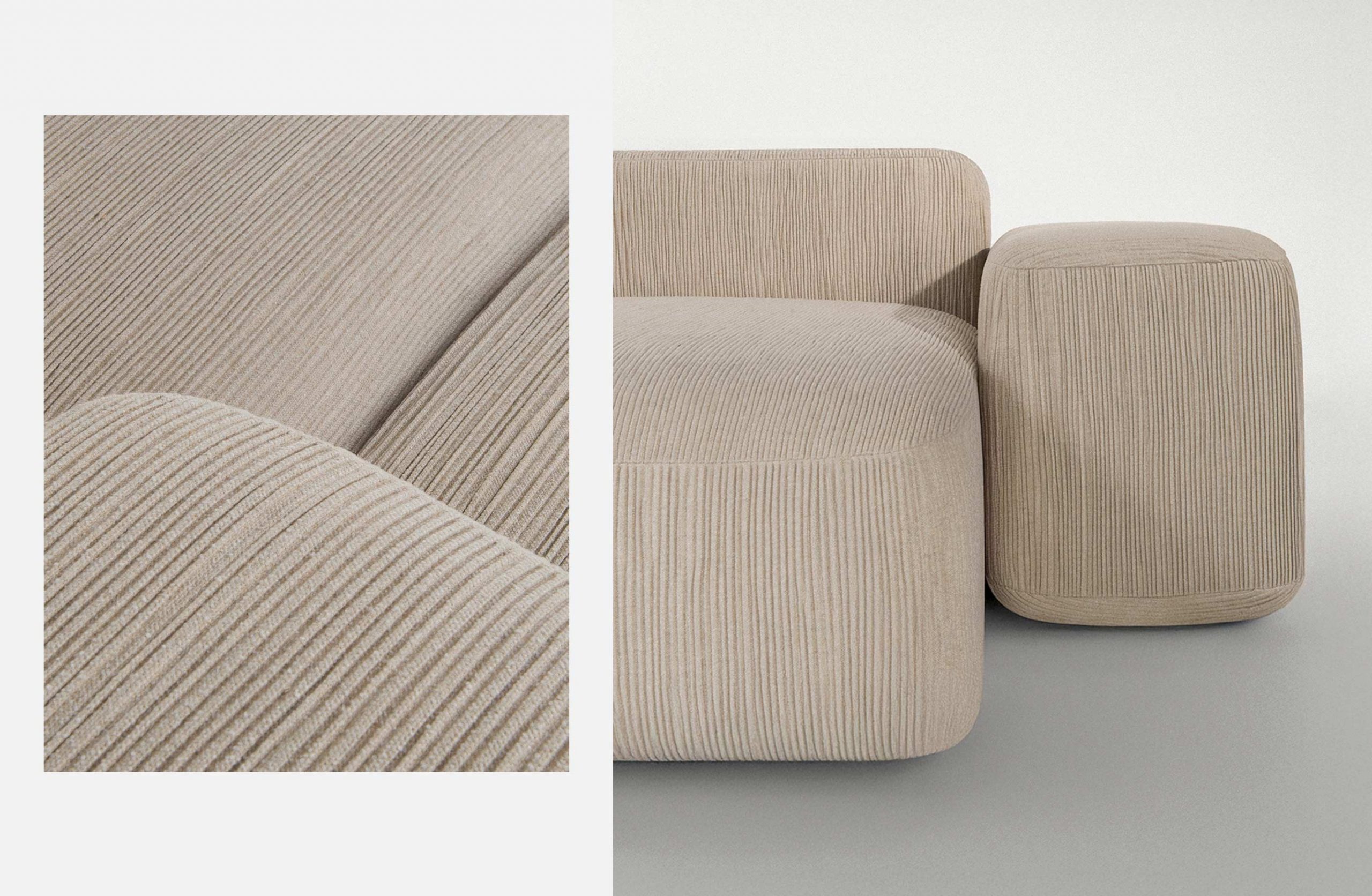 Encontre uma loja mais próximaThe Bold sofa proposes a new way of inhabiting space through modular intelligence. With generous volumes and gently rounded corners, its robust yet friendly aesthetic invites comfort and versatility. The composition is made up of seat, backrest and arm modules that transform according to use – the arm can function as a puff, the backrest as a side support, and the wide seats make room for extra cushions, creating a more relaxed and welcoming experience. Bold’s modular system allows for linear, angular or deconstructed compositions, adapting to different contexts – from residential living rooms to corporate environments and waiting areas. The multiple color and fabric options, combined with the variety of shapes, give each configuration a unique personality. Its fitting system is extremely simple, allowing for quick and intuitive reorganizations according to the needs of the space. More than a sofa, Bold is a meeting place. A multifunctional island where socializing and relaxing come naturally.