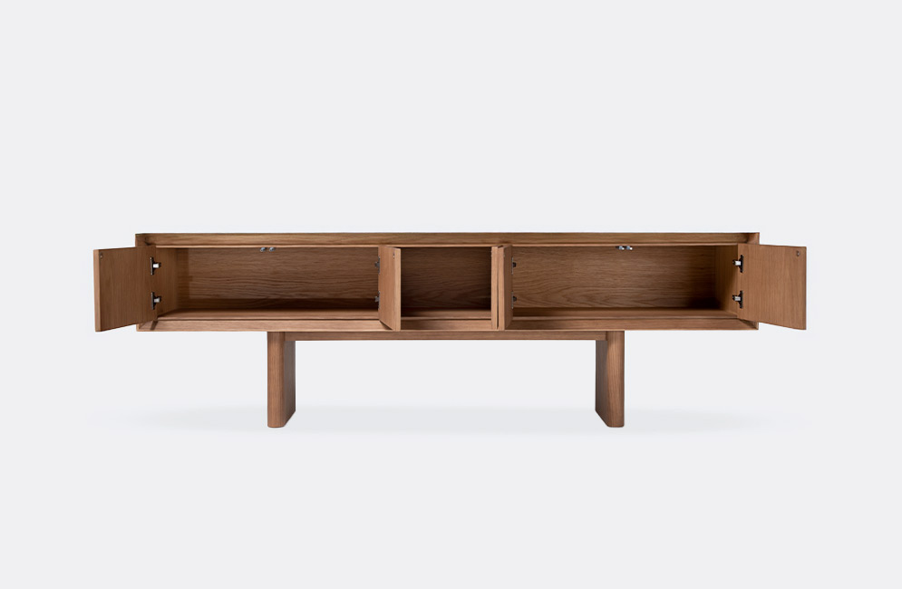 Encontre uma loja mais próximaThe Gio buffet has a contemporary design, marked by minimalist straight lines. It has wide doors and flat surfaces, revealing a clean and functional design that values the intelligent use of volumes. Its structure is solid, with well-distributed central and side legs that guarantee stability, while the built-in handle adds sophistication to the whole. The piece offers ample internal space, making it ideal for organization and support in different areas of the home. The result is a buffet with a precise and timeless language, customizable in various sizes and finishes.