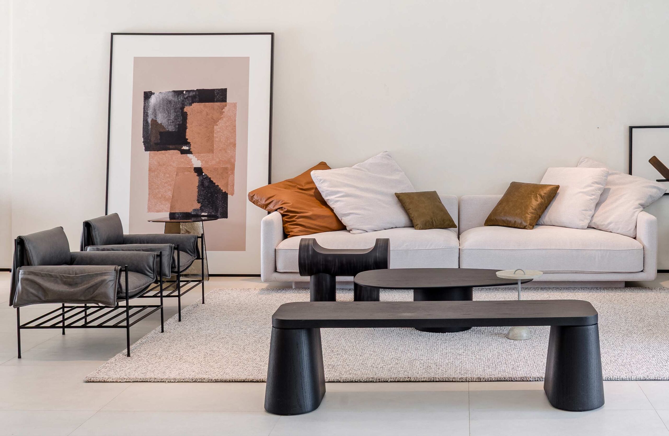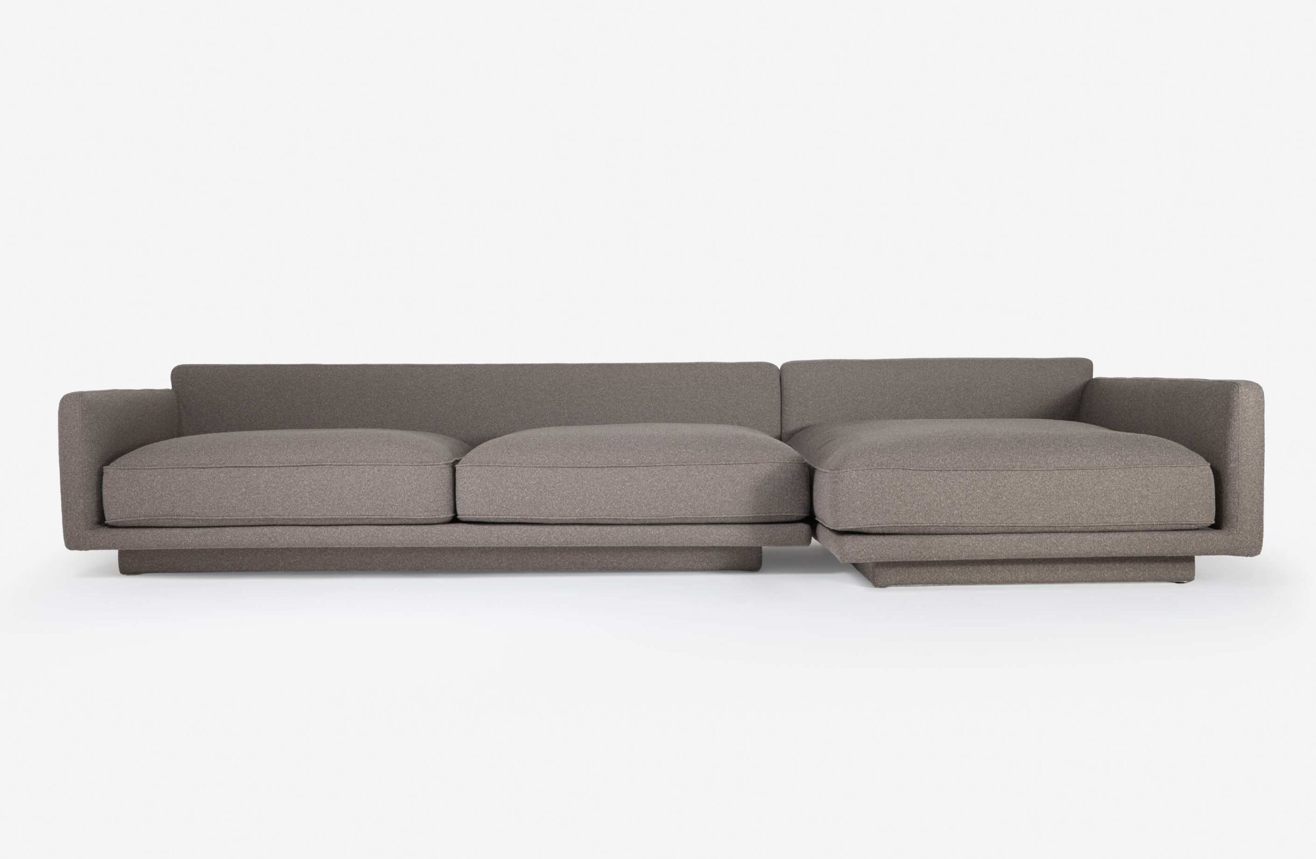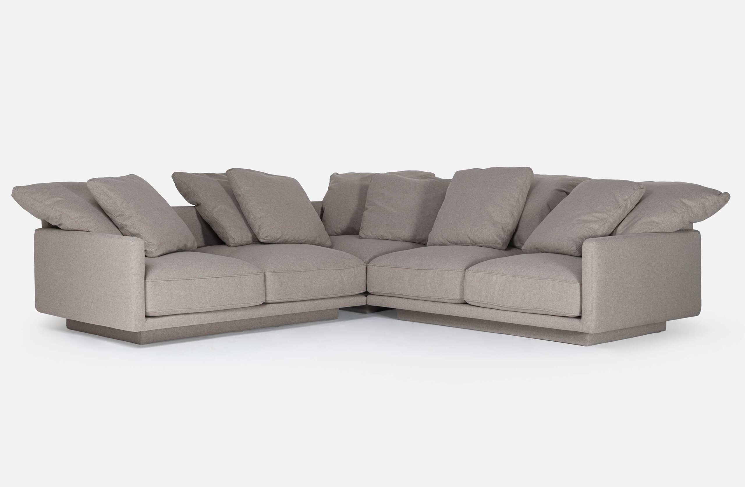 Del Sofa – with a monolithic base retracted into a swing, the Del Sofa was developed for casual and comfortable use, taking into account the purity of the shapes, with a light and unpretentious aesthetic. The backrest cushions form an asymmetrical composition that brings extreme comfort, an uncluttered look, and a tactile experience through the different textures and weaves of the coverings, which can be customized. The modular system includes elements with and without armrests. Available in multiple finishes.