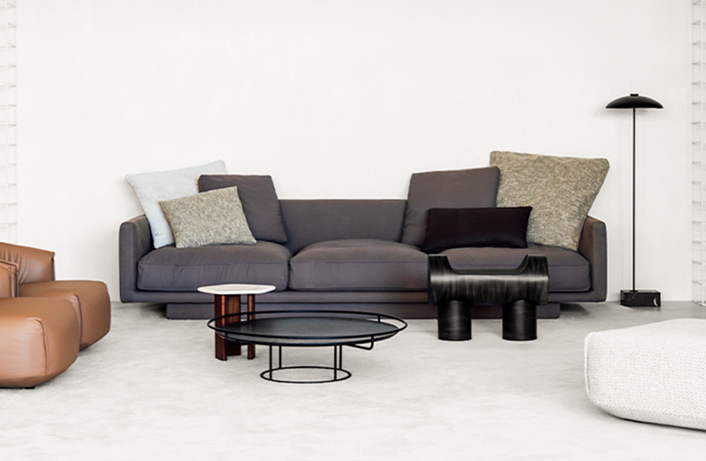 Encontre uma loja mais próximaDel Sofa – with a monolithic base retracted into a swing, the Del Sofa was developed for casual and comfortable use, taking into account the purity of the shapes, with a light and unpretentious aesthetic. The backrest cushions form an asymmetrical composition that brings extreme comfort, an uncluttered look, and a tactile experience through the different textures and weaves of the coverings, which can be customized. The modular system includes elements with and without armrests. Available in multiple finishes.