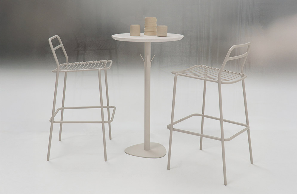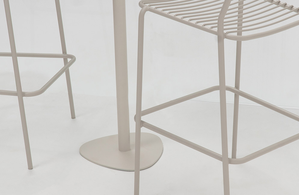 Encontre uma loja mais próximaThe Irish bar table has a contemporary design, marked by minimalist straight lines. It has a round top with gently chamfered edges, which adds sophistication to the set. Its tubular metal structure is light and sturdy, with an organically shaped base that guarantees stability. A striking detail of the Irish is the functional hook attached to the central stem, ideal for hanging bags or accessories, making it perfect for bars, cafés and social settings. Compact and versatile, the Irish table adapts easily to different spaces and needs, combining practicality with timeless elegance. Customizable in various finishes and sizes.