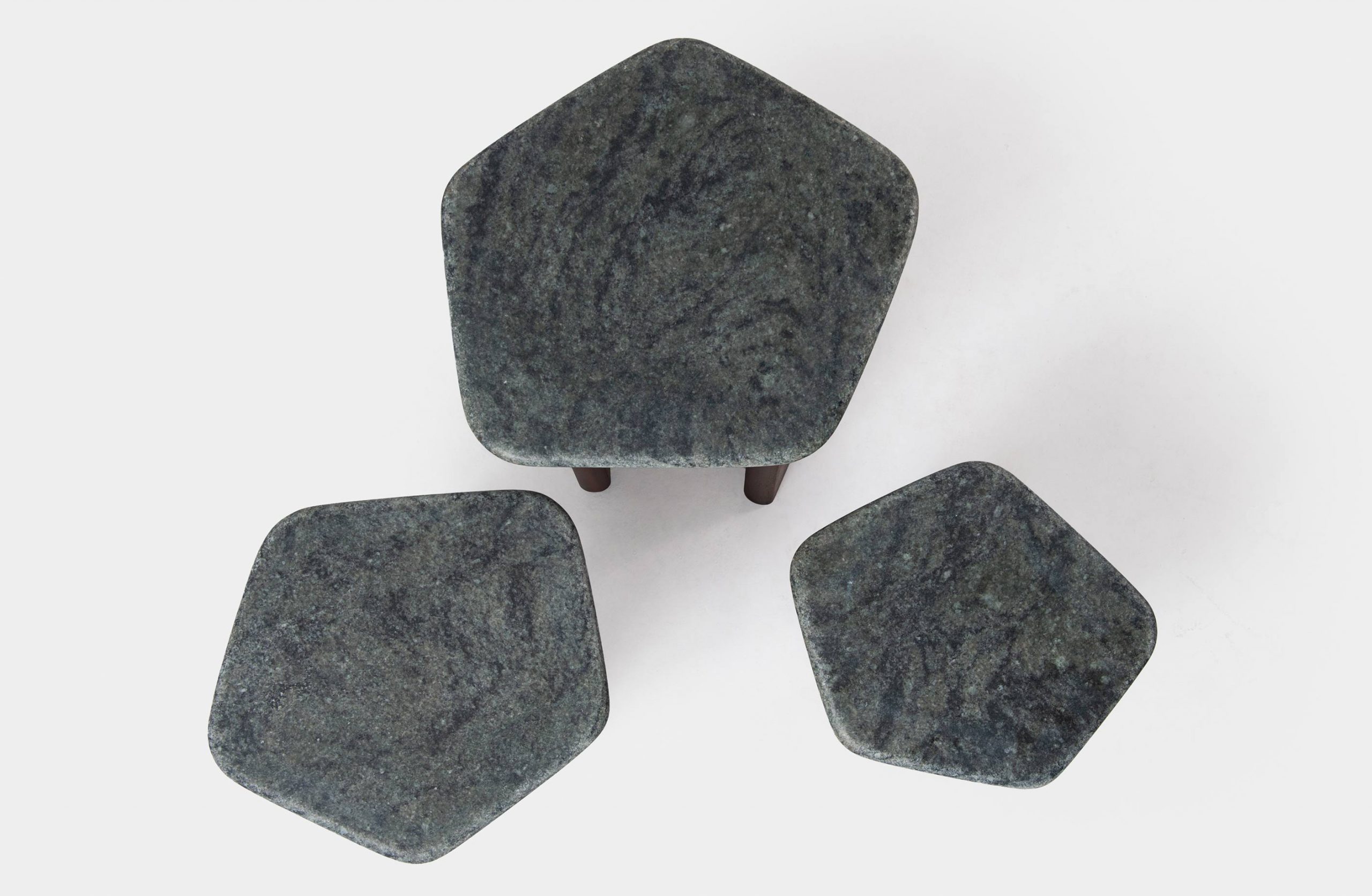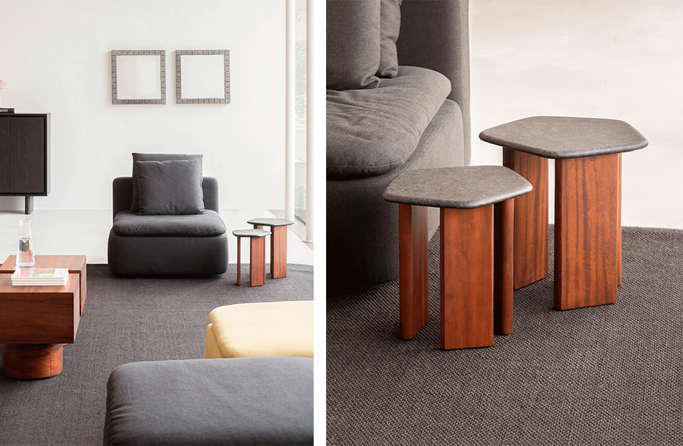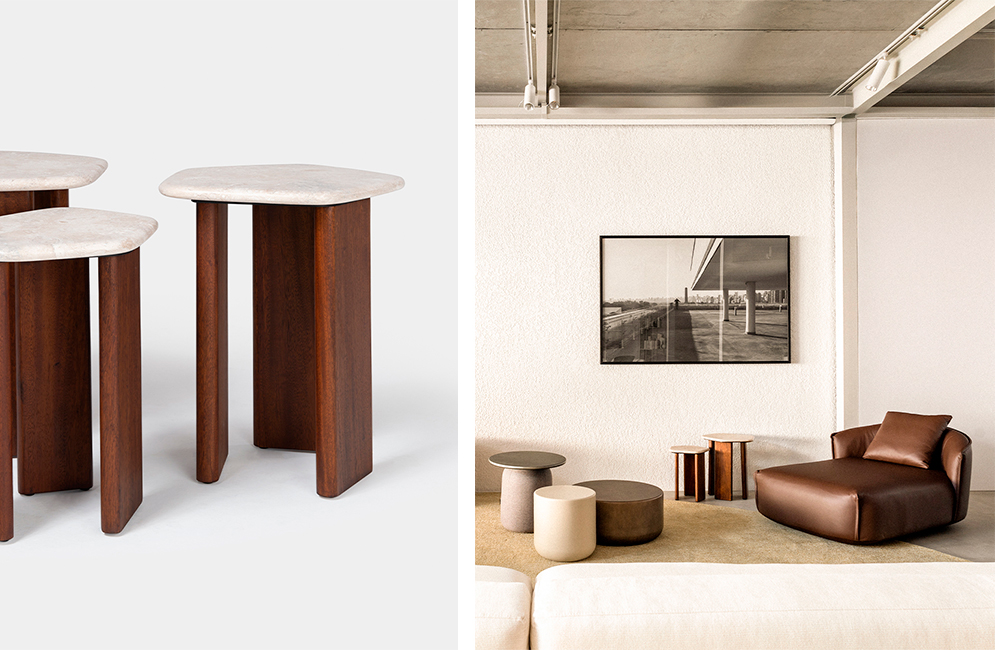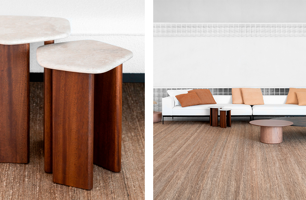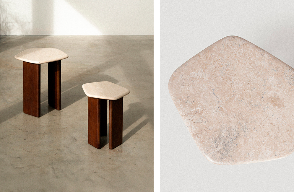 Encontre uma loja mais próximaThe Kira side table has a contemporary design, marked by minimalist straight lines. It has a natural stone top with gently rounded edges, which rests on a sturdy wooden structure made up of three vertical supports that guarantee stability and visual lightness. Its organic pentagonal shape adds a touch of dynamism and sophistication to the environment. Available in different wood and natural stone finishes, Kira adapts easily to different styles and spaces, combining functionality with timeless elegance.