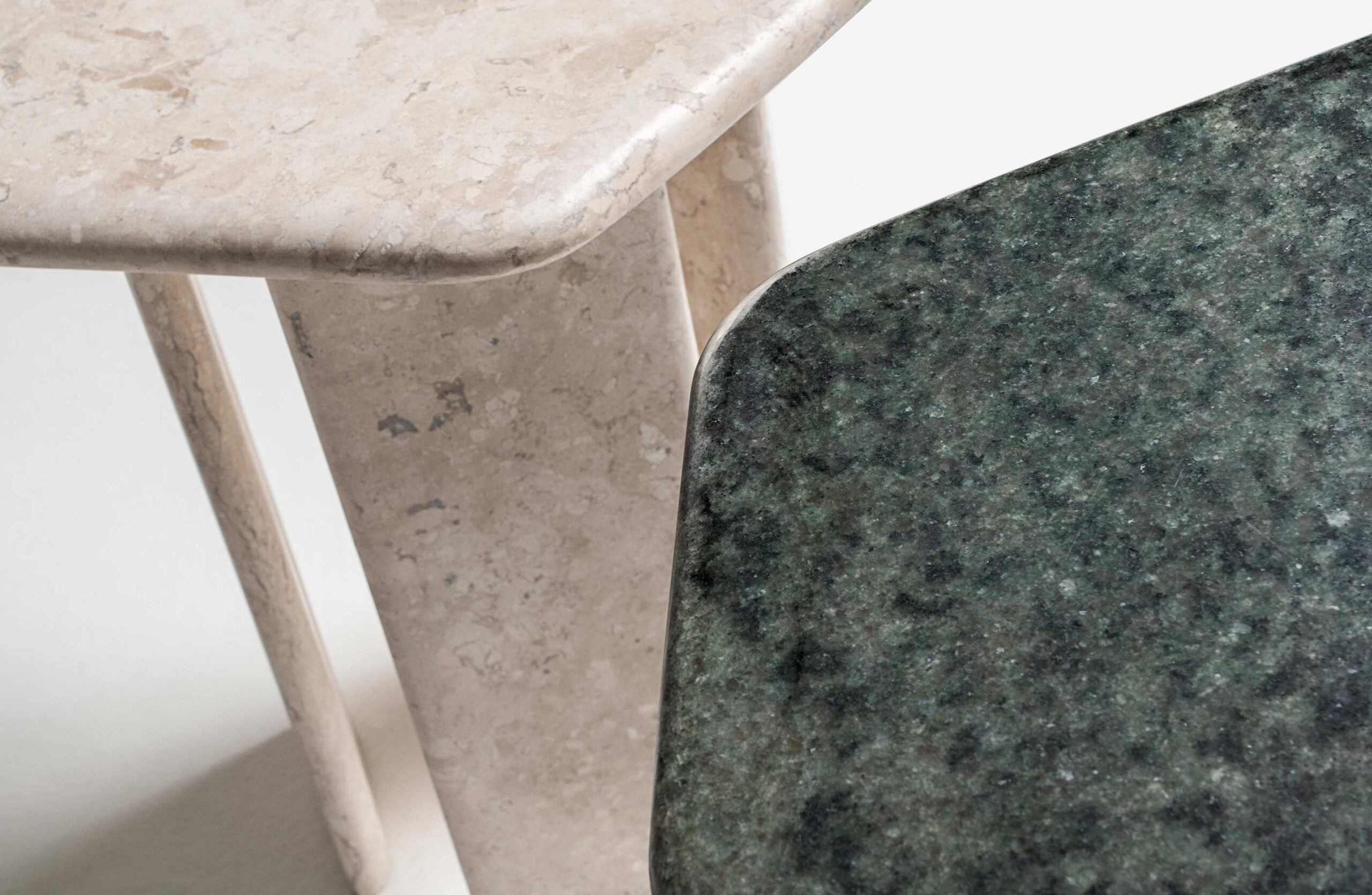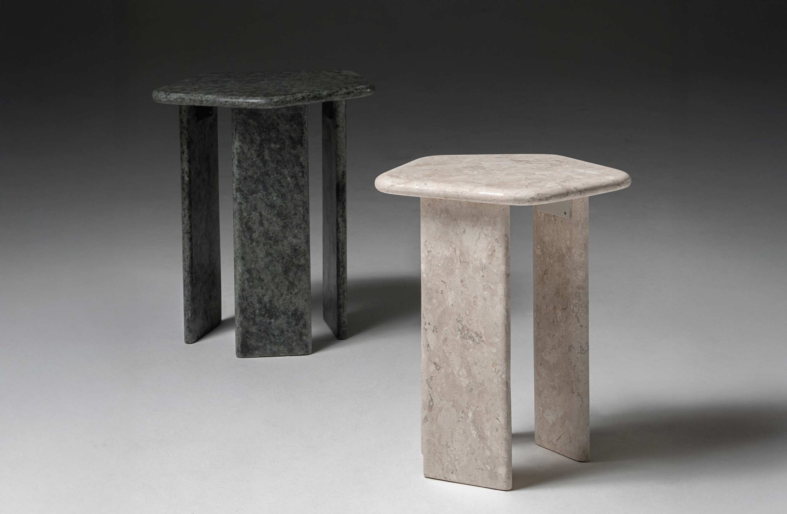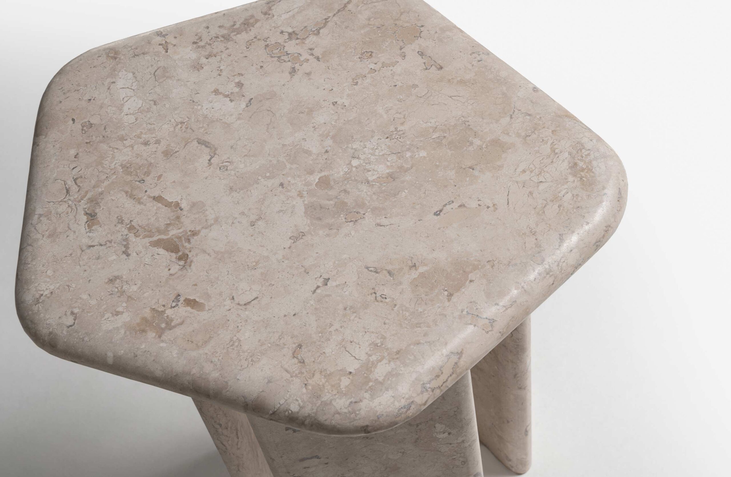 The Kira side table has a contemporary design, marked by minimalist straight lines. It has a natural stone top with gently rounded edges, which rests on a sturdy wooden structure made up of three vertical supports that guarantee stability and visual lightness. Its organic pentagonal shape adds a touch of dynamism and sophistication to the environment. Available in different wood and natural stone finishes, Kira adapts easily to different styles and spaces, combining functionality with timeless elegance.
