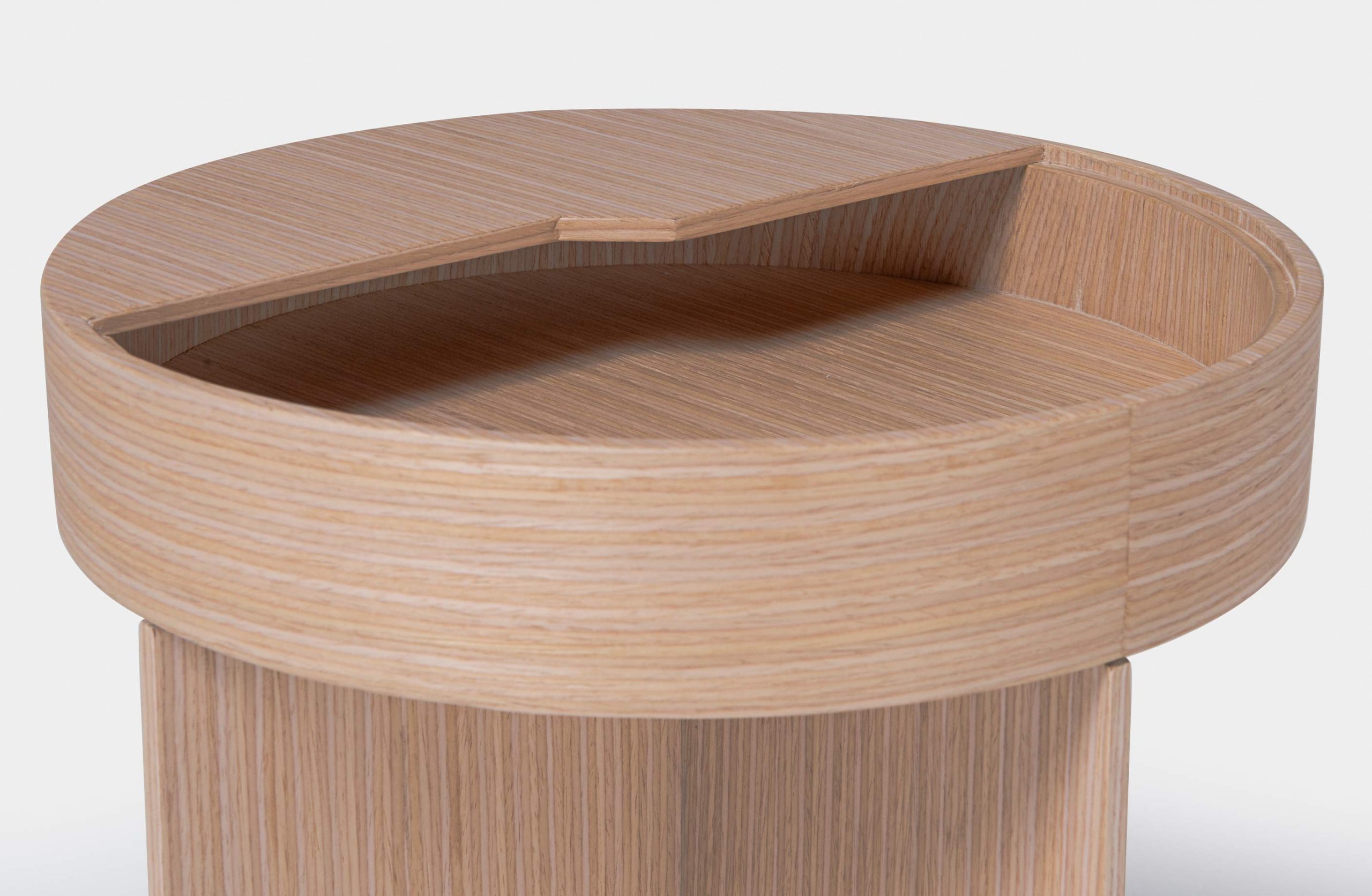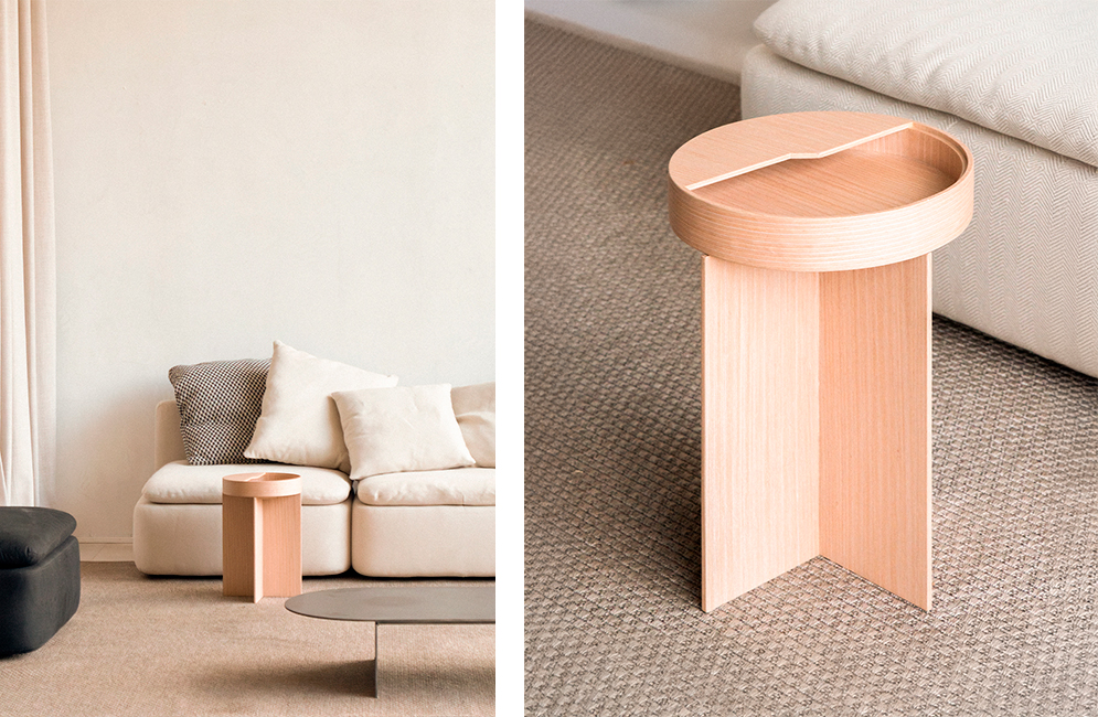 Encontre uma loja mais próximaThe Mia side table has a contemporary design, marked by minimalist straight lines. It has a round top with a raised edge and an asymmetrical opening, which gives the piece its functional character and dynamic look. The base is made up of two crossed plates that meet at a central axis, ensuring stability and lightness. The structure of discreet legs reinforces the sense of continuity and lightness in the design. Available in two sizes and multiple finishes.