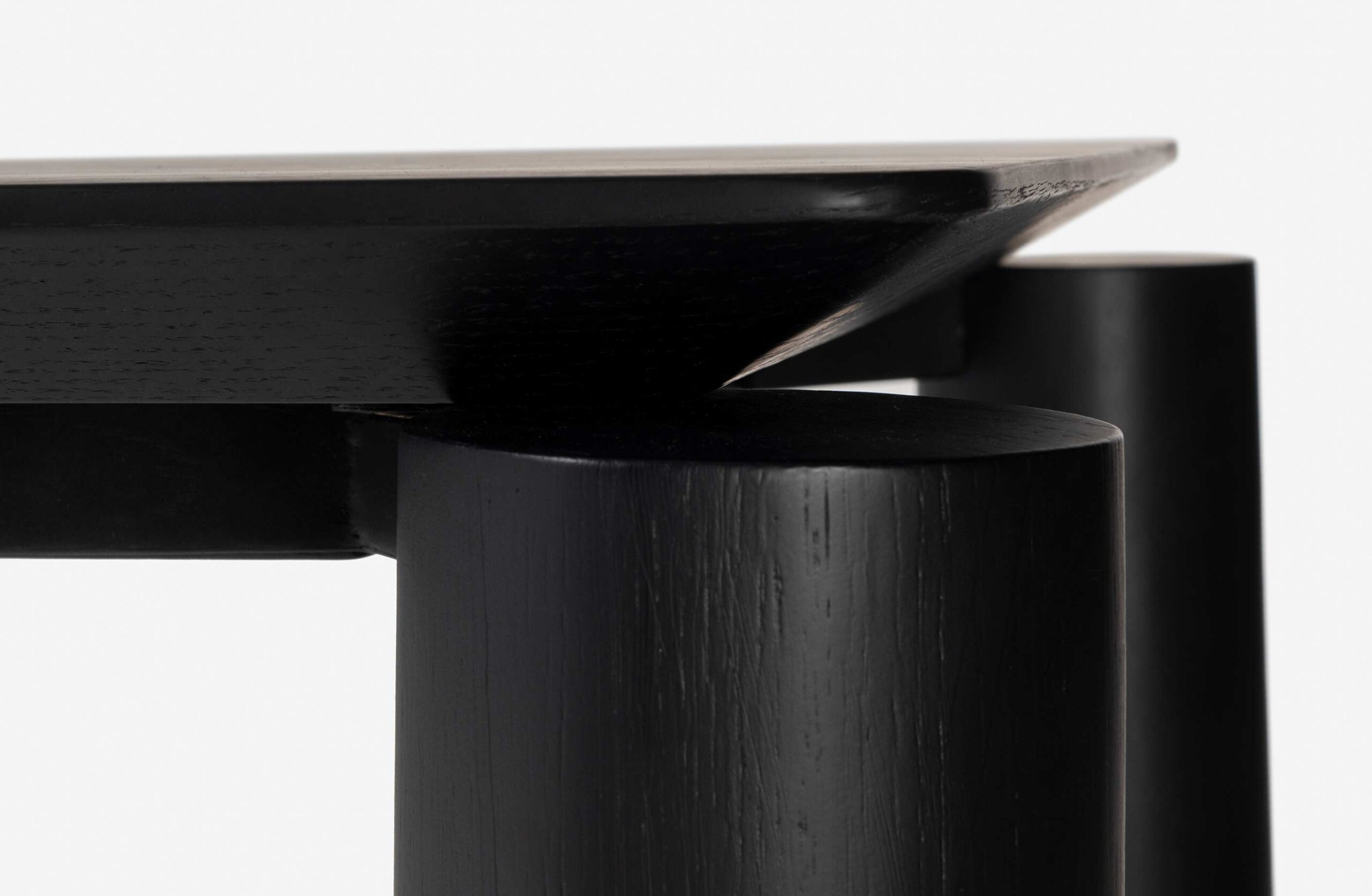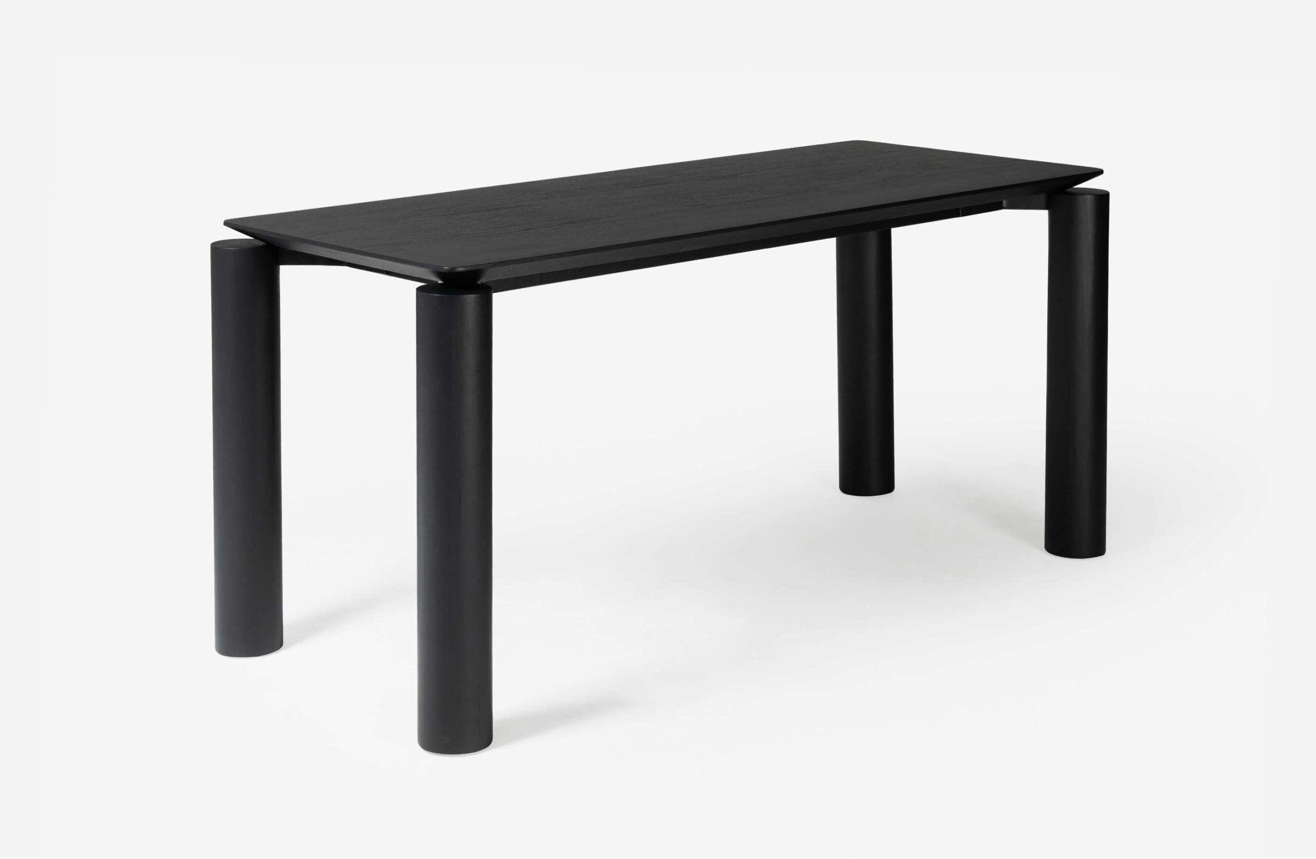 A mesa de jantar Glenn conta com um design contemporâneo, marcado por linhas retas minimalistas e proporções bem definidas. Seu tampo possui cantos suavemente arredondados que parecem flutuar sob a estrutura, criando um efeito visual leve e sofisticado. Os quatro pés cilíndricos posicionados nos extremos reforçam a simetria e a estabilidade da peça, enquanto os detalhes construtivos ficam parcialmente aparentes, adicionando um caráter técnico e elegante ao conjunto. Disponível em múltiplos tamanhos e acabamentos.