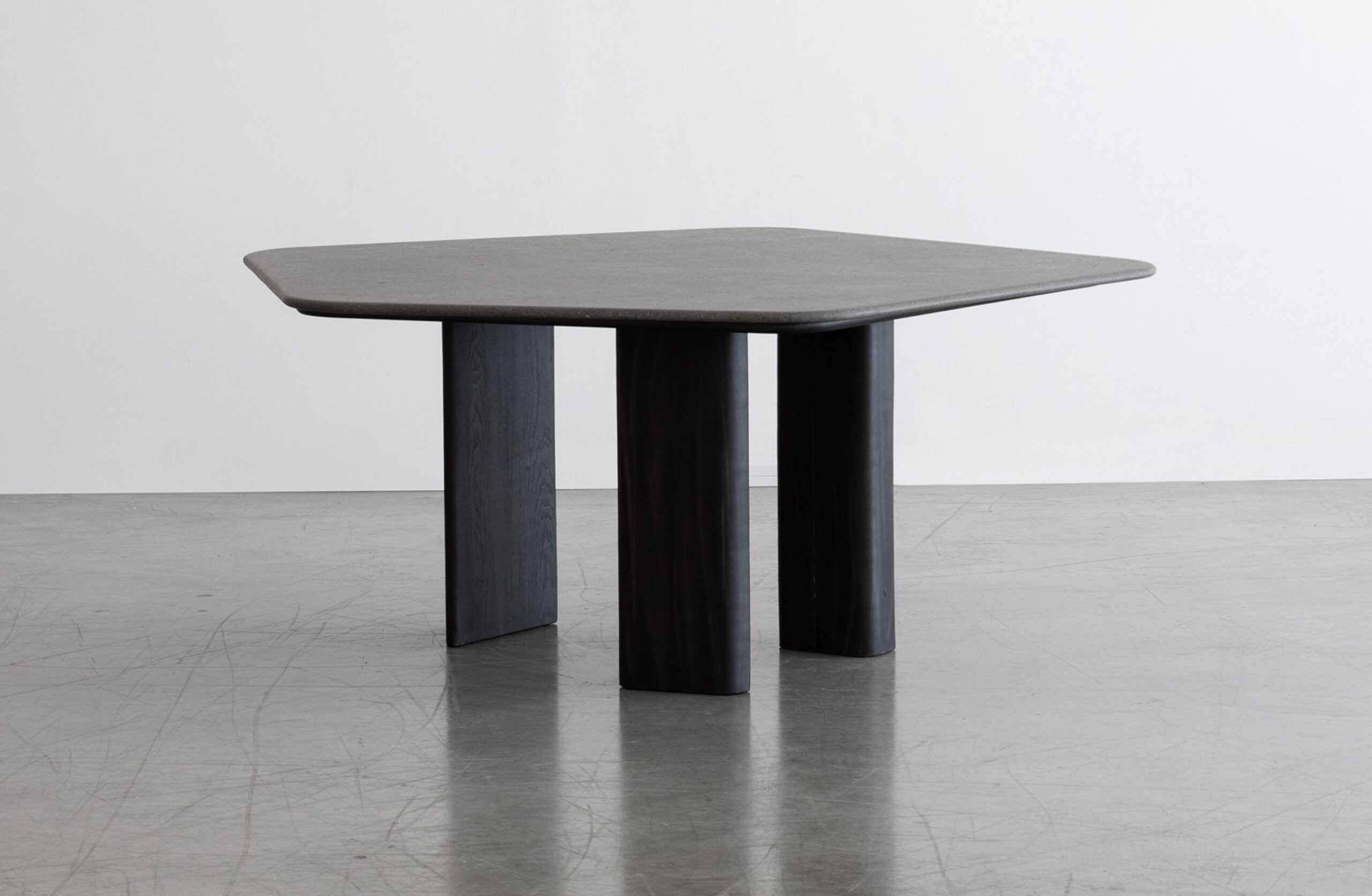 A mesa de jantar Isla conta com um design contemporâneo, marcado por linhas retas minimalistas e proporções esculturais. Seu tampo pentagonal com bordas arredondadas traz uma geometria pouco convencional que valoriza a fluidez e convida à interação. Produzido em pedra natural, o tampo possui presença marcante e textura sofisticada, contrastando com a base composta por quatro paineis verticais em madeira que conferem leveza estrutural e estabilidade visual. A Isla é uma peça de caráter autoral que se adapta a diferentes contextos de uso, funcionando como ponto de encontro ou elemento de destaque em espaços de convívio. Personalizável em diversos tamanhos e acabamentos.